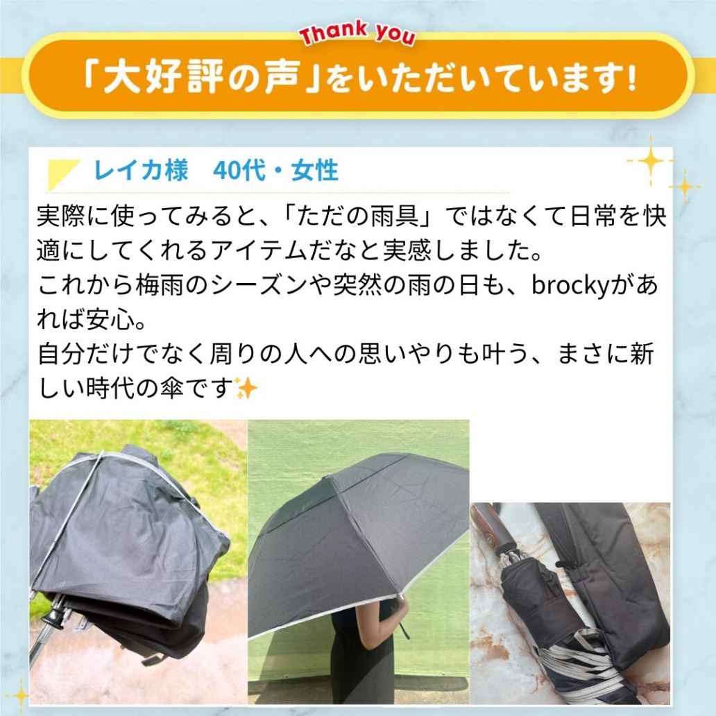 これから梅雨のシーズンや突然の雨の日も、brockyがあれば安心。
