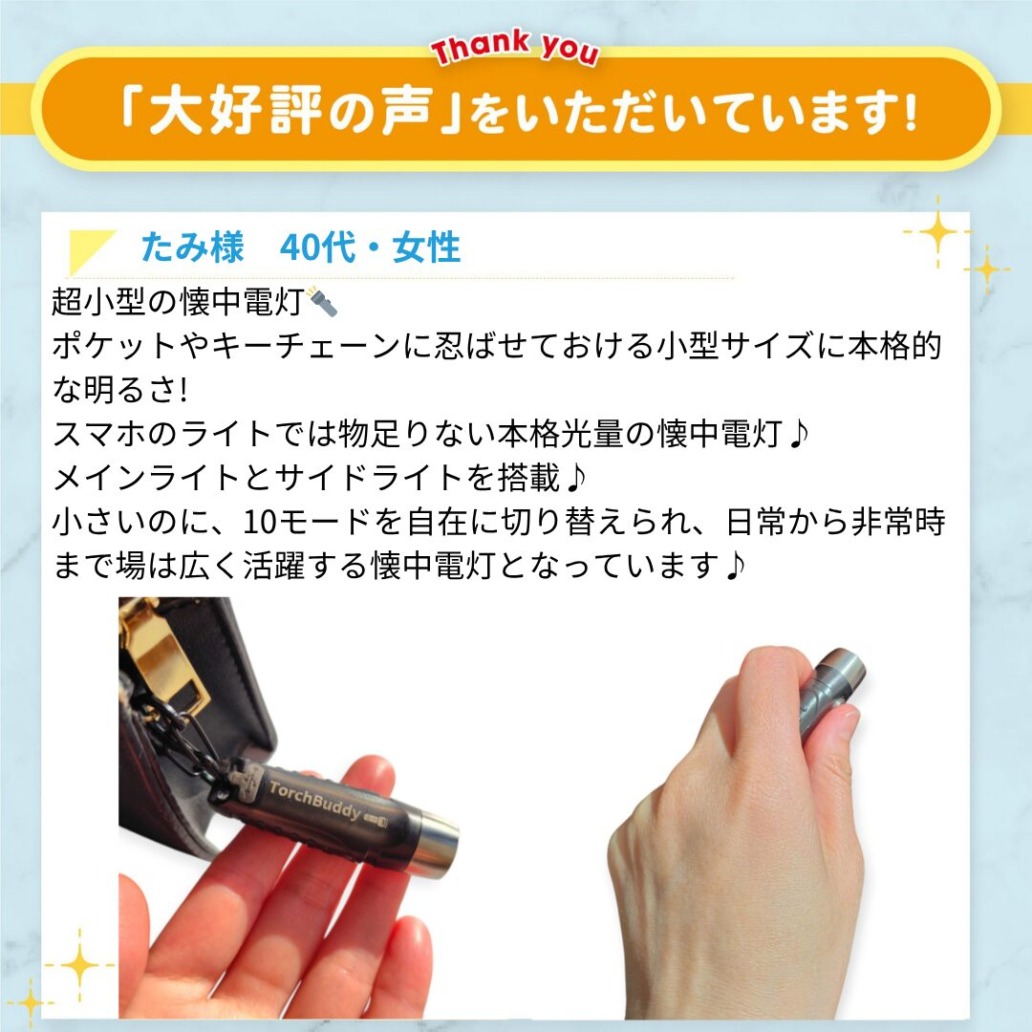 小さいのに、10モードを自在に切り替えられ、日常から非常時まで場は広く活躍する懐中電灯となっています♪