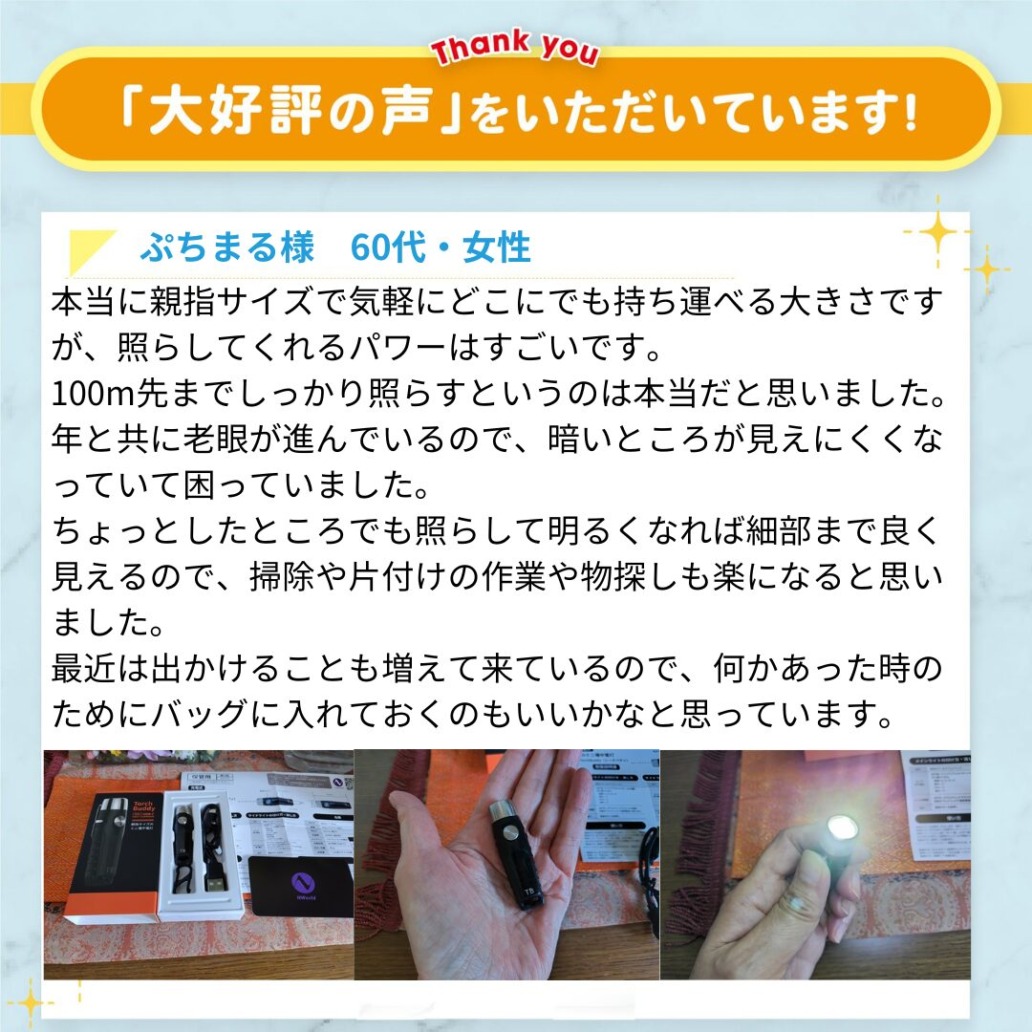 本当に親指サイズで気軽にどこにでも持ち運べる大きさですが、照らしてくれるパワーはすごいです。